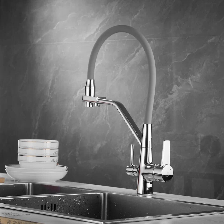 Смеситель для кухни с гибким изливом и поключением фильтра для воды Rose R558, хром