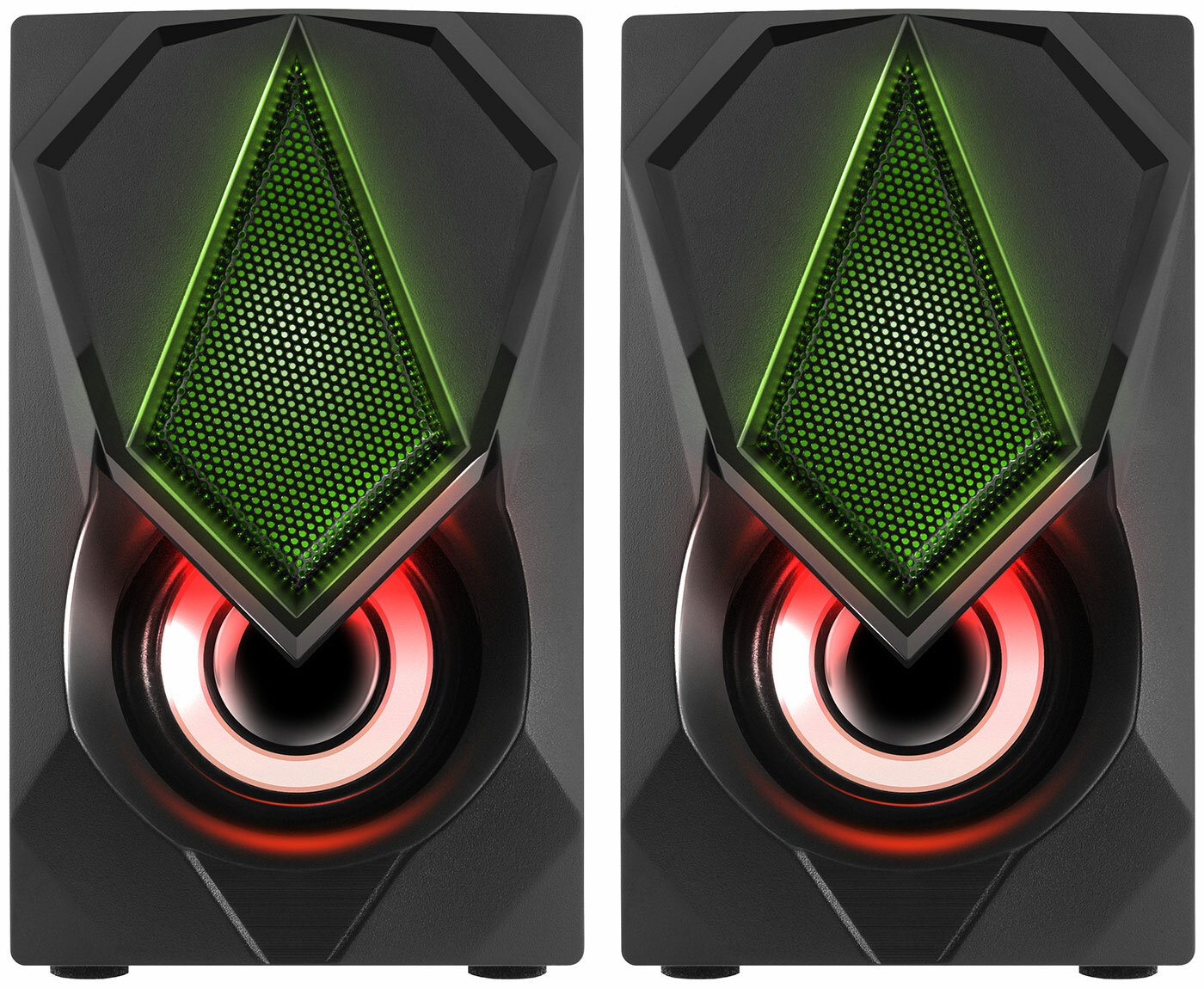 Лучшие цены. Особенности: Компактные размеры Светодиодная подсветка Регулятор громкости на кабеле Резиновые ножки предотвращают скольжение по поверхности стола Питание от порта USB Технические данные: Суммарная выходная мощность (RMS): 6 Вт Мощность сателлитов (RMS): 2х3 Вт Соотношение сигнал/шум: 65 дБ Диапазон частот: 9020000 Гц Размер динамиков: 2х2.5 Разъем для наушников Тип интерфейса: 3,5-мм джек Регуляторы: общая громкость Питание: от USB, 5 В Максимальное расстояние между сателлитами: 1 м Длина кабеля: 1.1 м. Магазины в вашем городе.