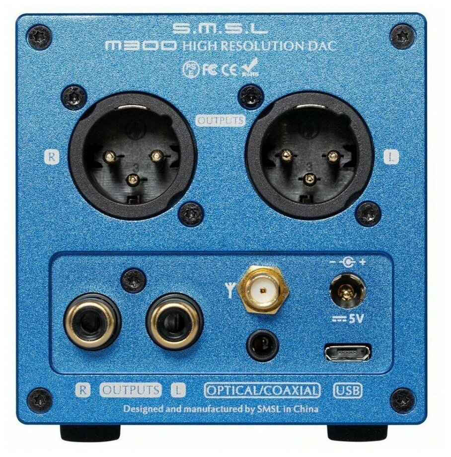 Лучшие цены. ЦАП SMSL M300 - балансный ЦАП, который можно подключить практически к чему угодно у него есть вход USB и совмещенный разъем оптика/коаксиал, а также Bluetooth 5.0 с поддержкой aptX и SBC. 5 В питания он получает от внешнего блока. Выходы есть и балансные, и небалансные. В основе ЦАПа лежит чип AK4497 EQ, готовый работать с сигналами PCM до 32 бит/768 кГц и DSD512 (нативно, без переконвертации). К PCM-сигналу можно применить один из шести цифровых фильтров, к DSD-сигналу один из двух. Магазины в вашем городе.