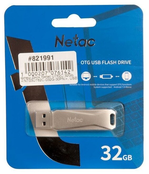 32Gb Netac U782c metal USB 3.0 + TypeC (nt03u782c-032g-30pn) Nt03u782c-032g-30pn