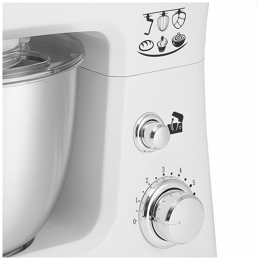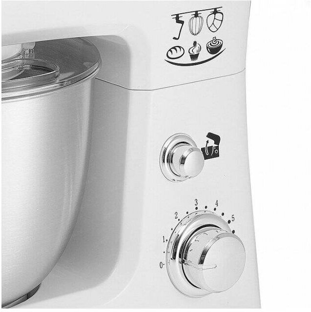 Миксер планетарный DELTA LUX DE-7900Р белый/ белый с серым: 1000 Вт,чаша из нерж.стали-3,5л