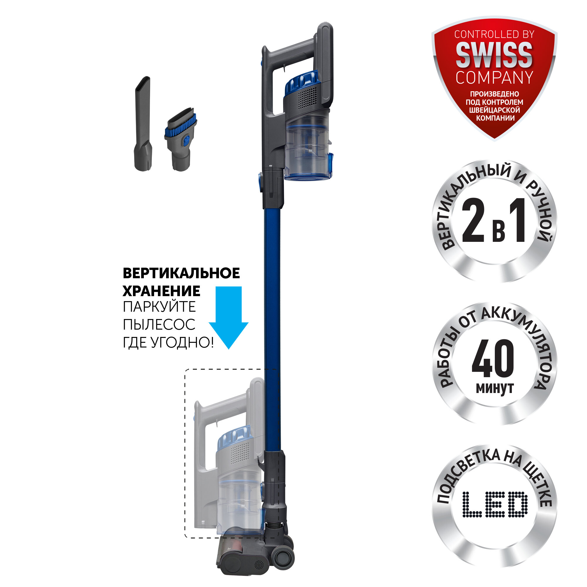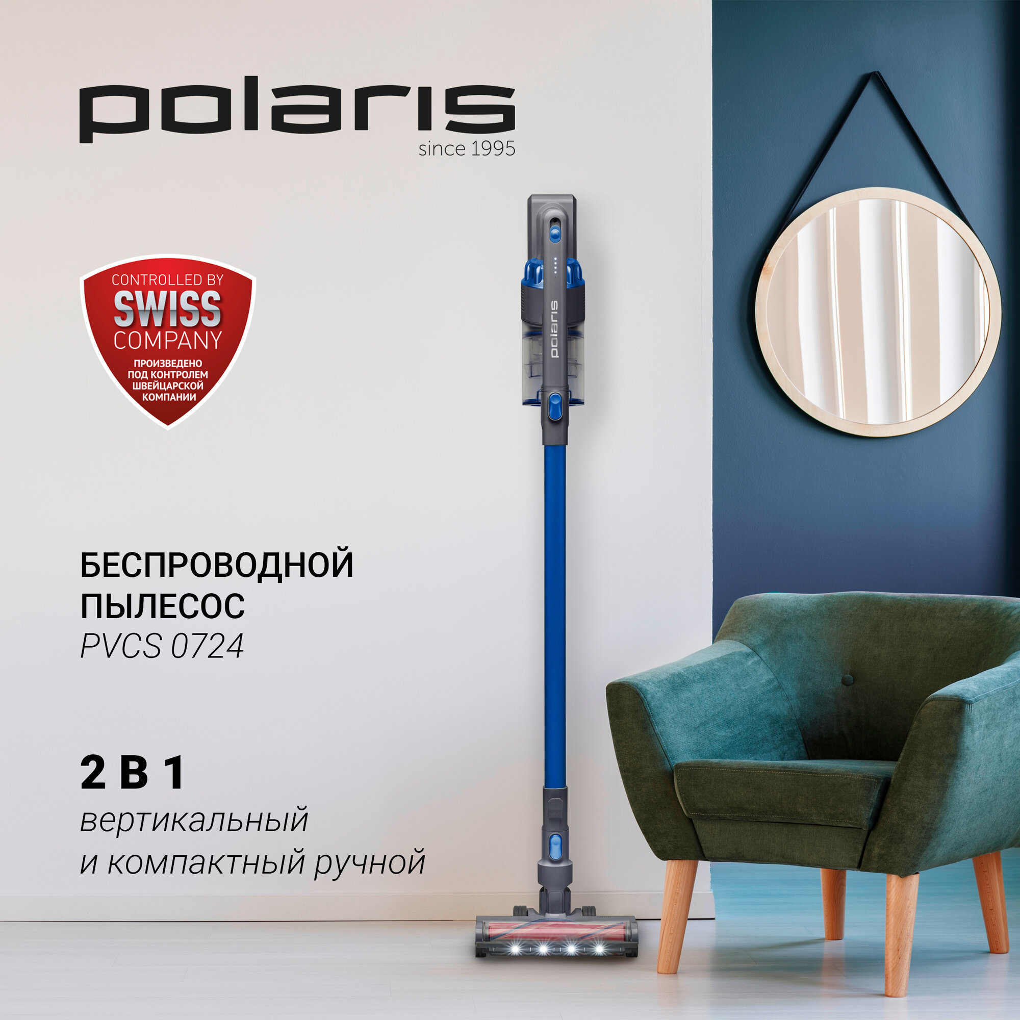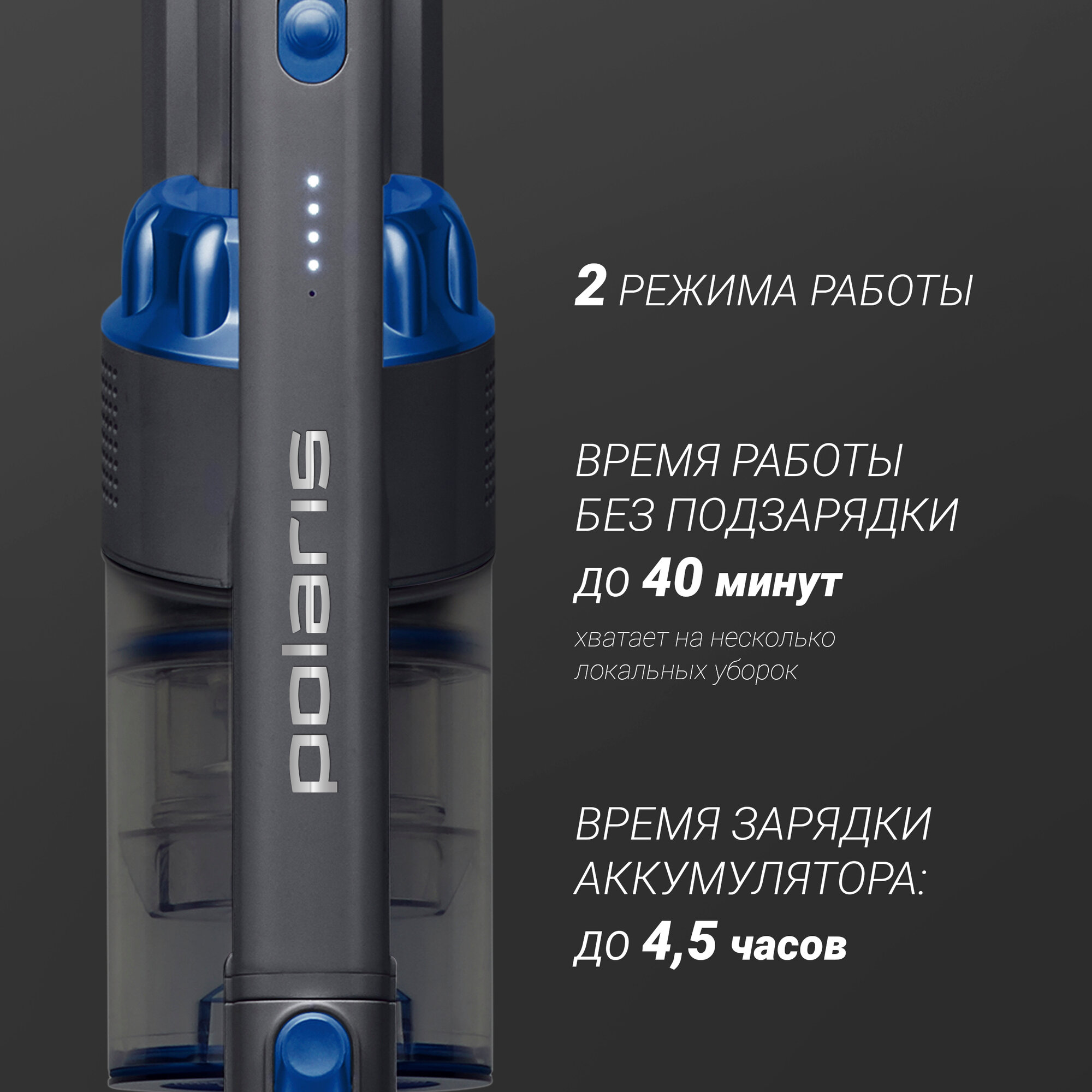 Пылесос вертикальный Polaris PVCS 0724, Графит/синий