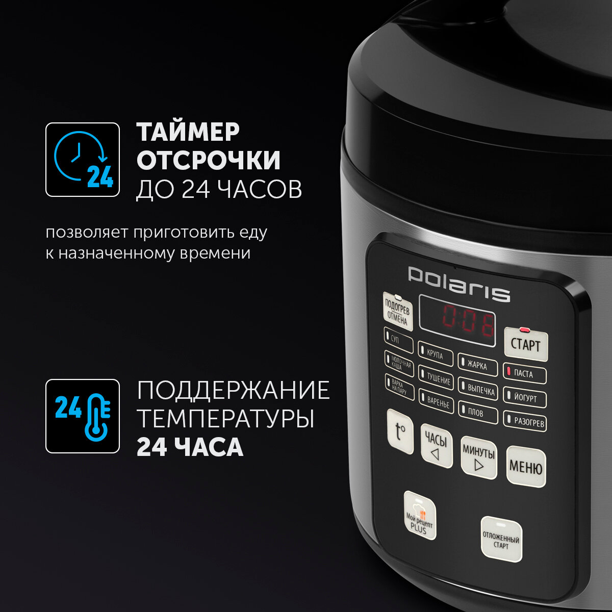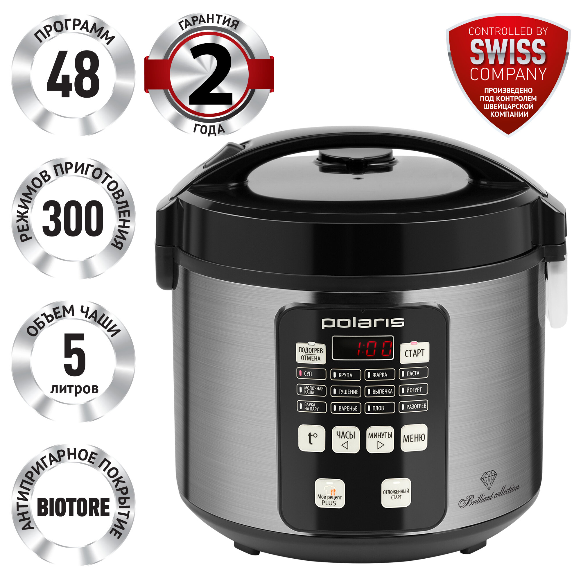 Мультиварка Polaris PMC 0593AD, 750 Вт, 5 л, 48 программ, чёрно-серебристая Polaris 9661617 .