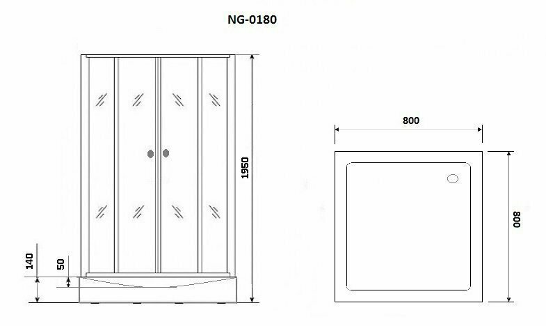 Уголок душевой NG- 0180-14 (800х800х1950) низкий поддон(14см), стекло прозрачное, 2 места