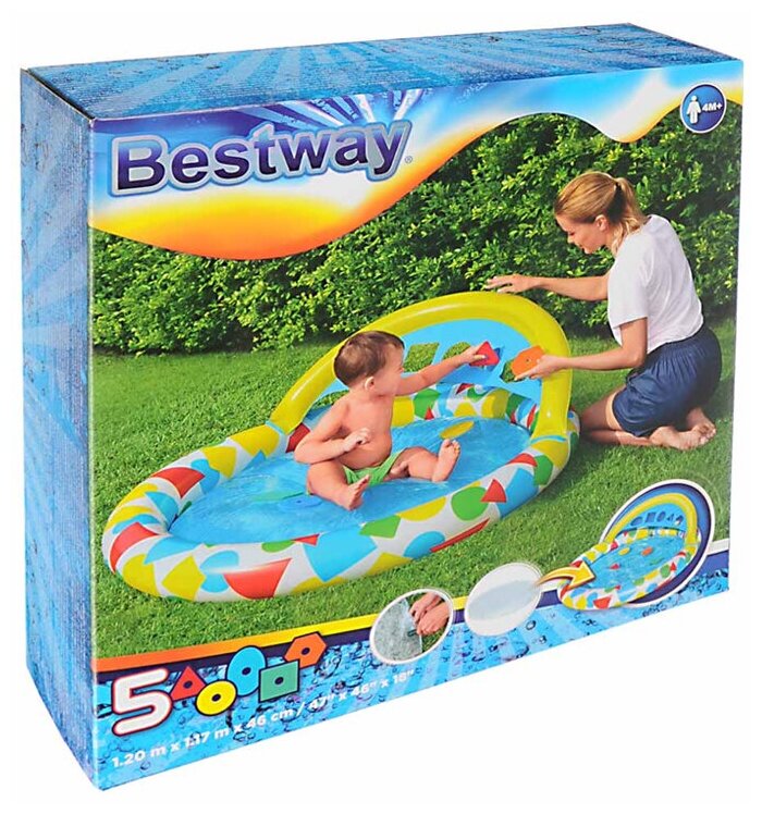 Бассейн надувной детский Splash & Learn, 120 x 117 x 46 см, с навесом, 52378 Bestway
