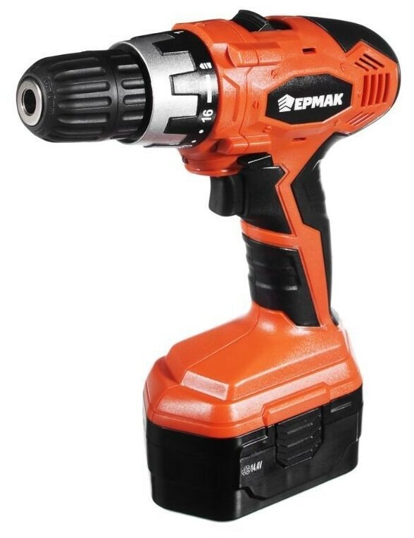 Дрель-шуруповерт аккумуляторная ермак ДША 14-2 /Ni-Cd/14,4V/1,2 А*ч/0-350/0-1250 об/мин.б/мин /16Н*м/ 2аккум