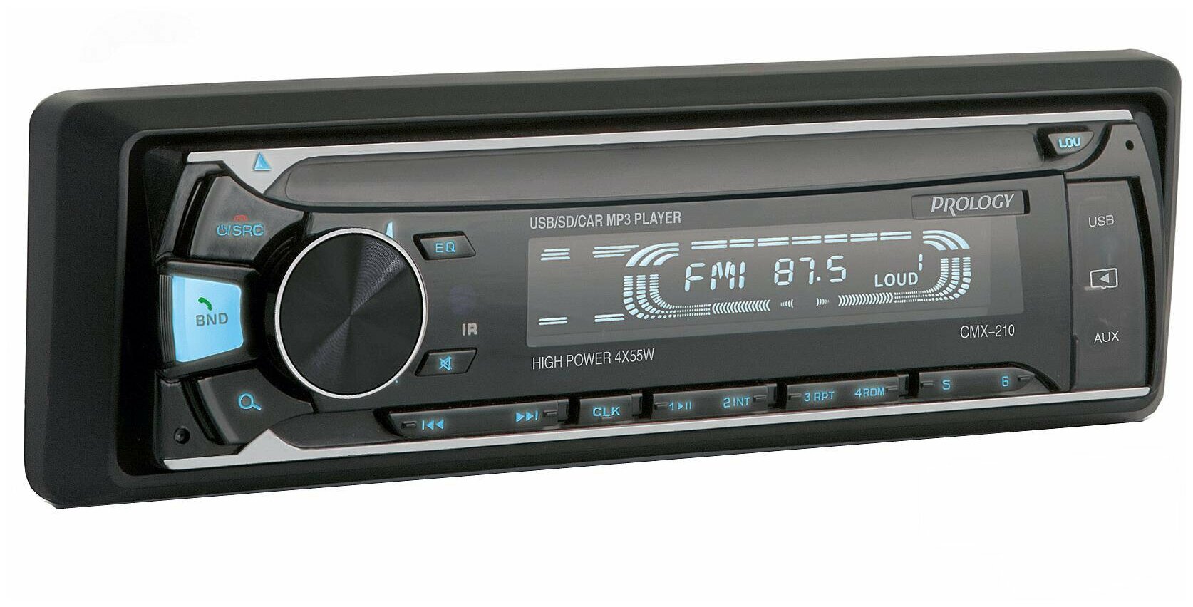 Лучшие цены. PROLOGY CMX-210 — FM SD/USB ресивер с Bluetooth, это автомагнитола стандартного размера 1DIN, которая обеспечивает прием радиостанций в диапазоне FM, воспроизведение медиафайлов, записанных на карты памяти USB / microSD, передачу звука с внешних источников, а также управление мобильным телефоном через интерфейс Bluetooth (ver. 4,2). Кроме того, устройством можно управлять с помощью приложения, установленного на Ваш смартфон с операционной системой Android.* особенности модели PROLOGY CMX-210 Максимальная. Магазины в вашем городе.