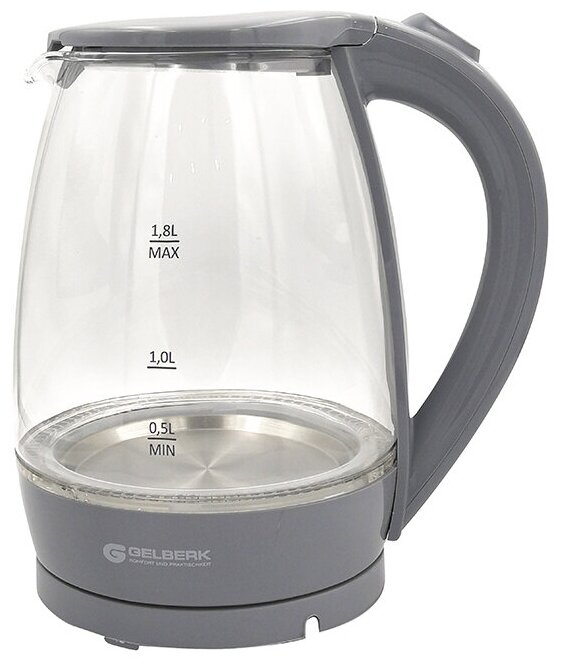 Чайник электрический GELBERK GL-473, стекло, 1.8 л, 2000 Вт, серый