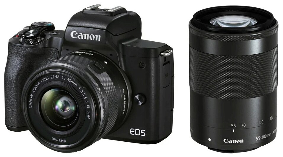 Фотоаппараты Цифровой фотоаппарат Canon EOS M50 Mark II Kit 15-45mm IS STM - EF-M 55-200mm IS STM black