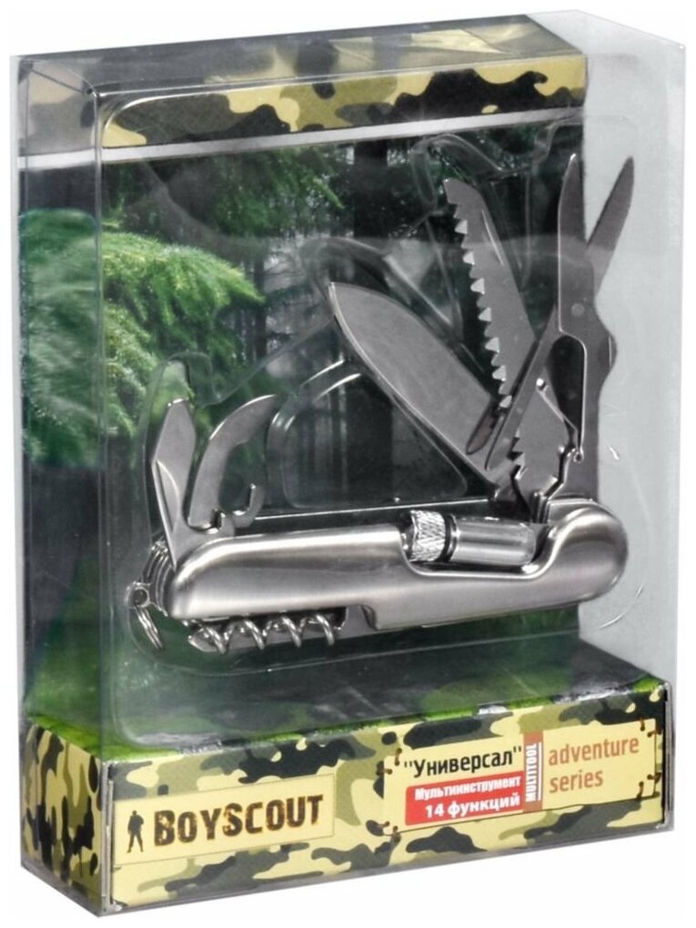 Мультиинструмент Boyscout, "Универсал", 61285, нерж, 14 функций, светодиоднй фонарь