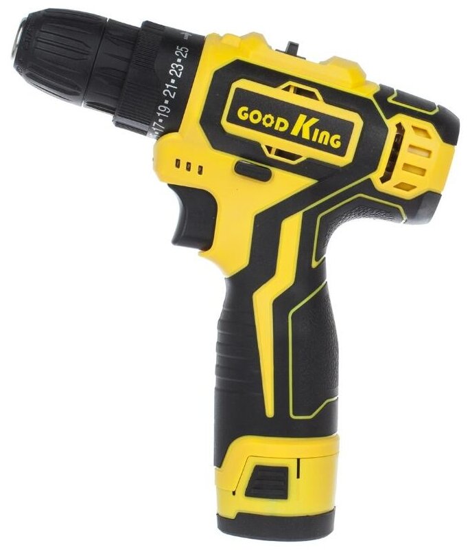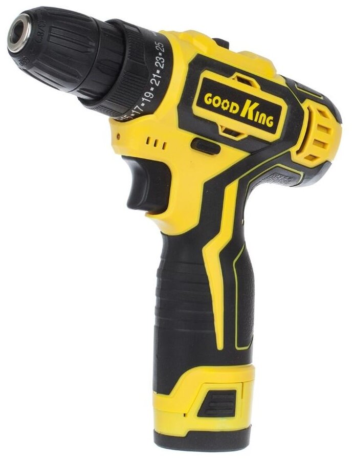 Лучшие цены. Аккумуляторная дрель-шуруповерт GOODKING предназначена для сверления отверстий в различных материалах. Инструмент комплектуется мощным 2-скоростным редуктором. Она оснащена быстрозажимным патроном, что способствует простой смене оснастки. Быстрозажимной патрон легко открывается и закрывается. Мощный планетарный редуктор обеспечивает долгий срок службы. Благодаря встроенной подсветке, работать можно при плохом освещении или в темное время суток. Магазины в вашем городе.