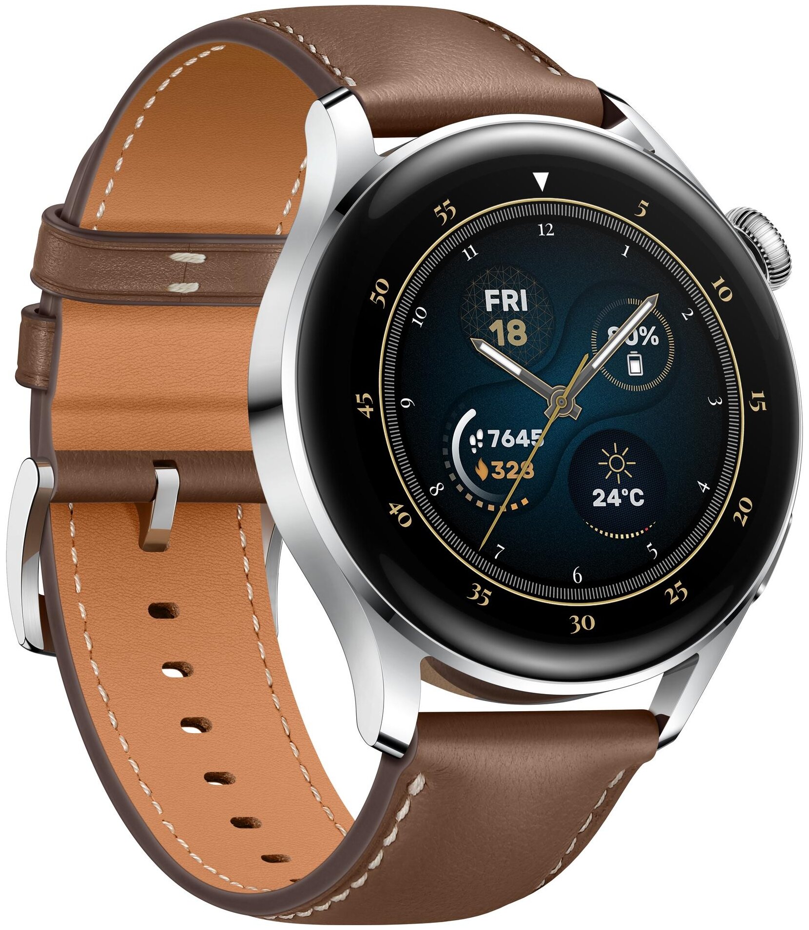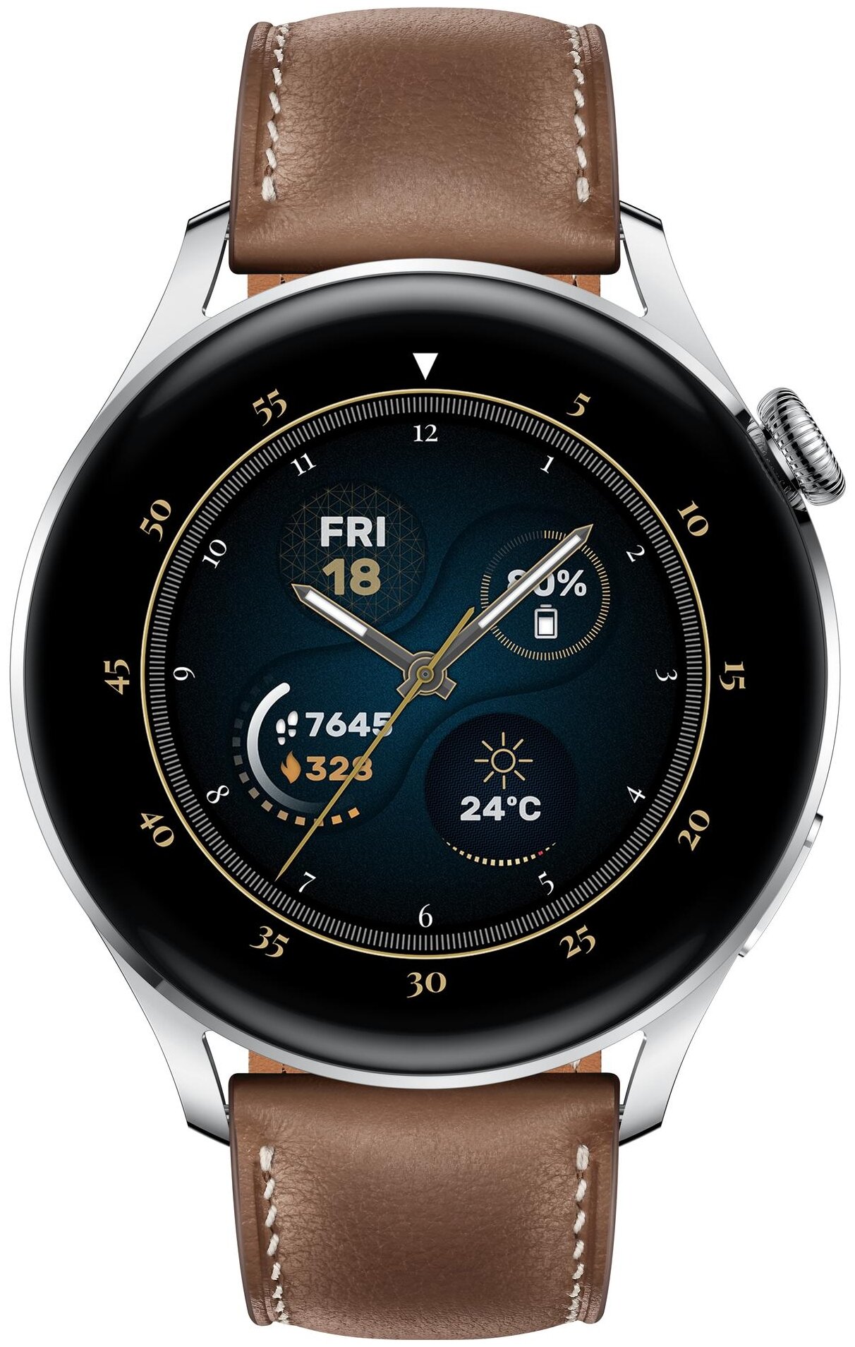 Умные часы HUAWEI Watch 3 Classic 46 мм NFC, серебристый/коричневая кожа