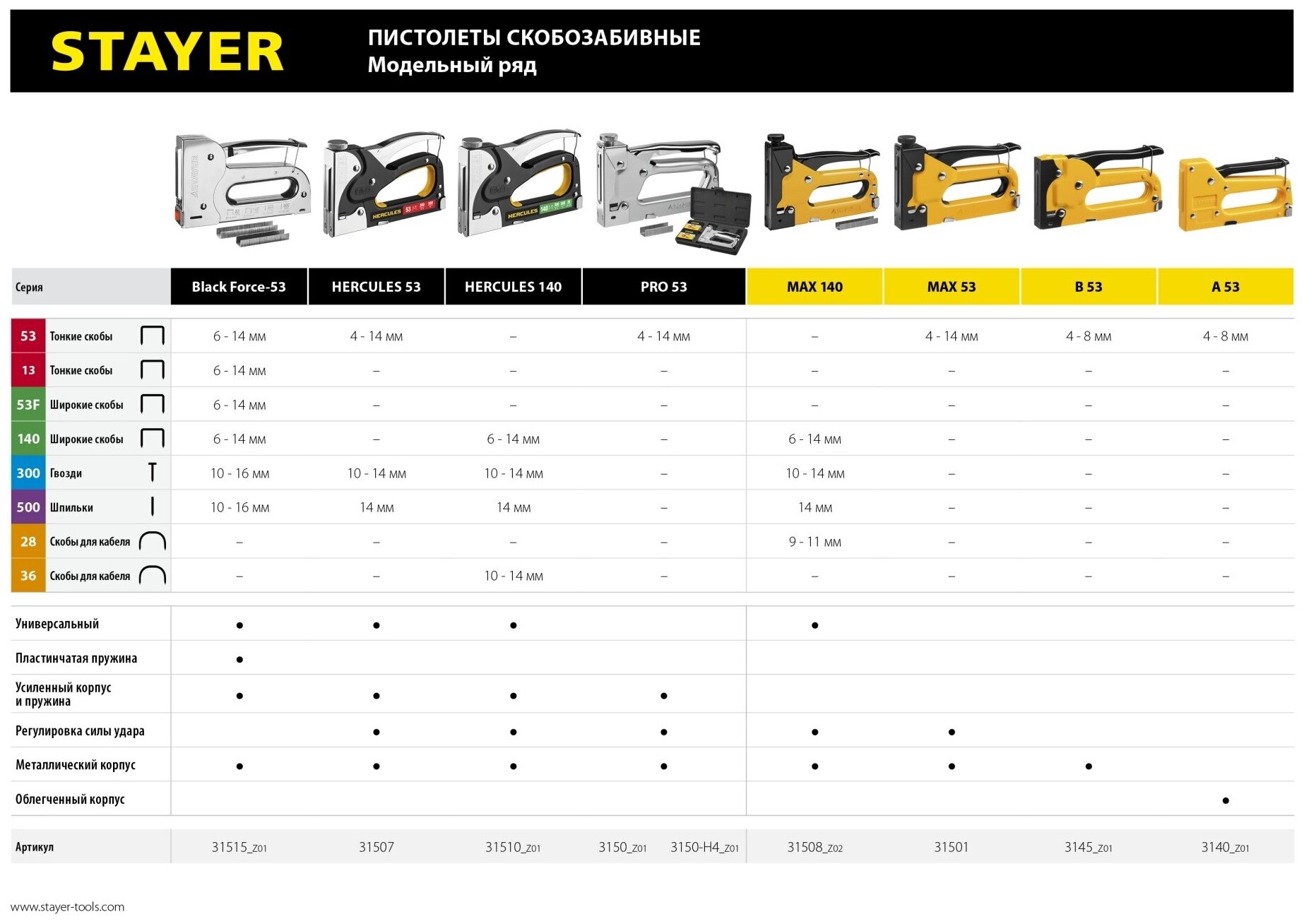Строительный степлер Стальной степлер Stayer BlackForce-53 тип 53, 140, 300, 500 31515_z01 .