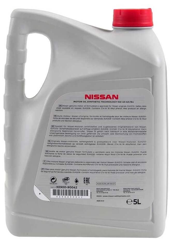 NISSAN Ke90090042r_масло Моторное Nissan 5w40 Motor Oil (5l) (Синт.)! Euapi Sl/Cf Acea A3/B4 7 414 ₽ Подробнее