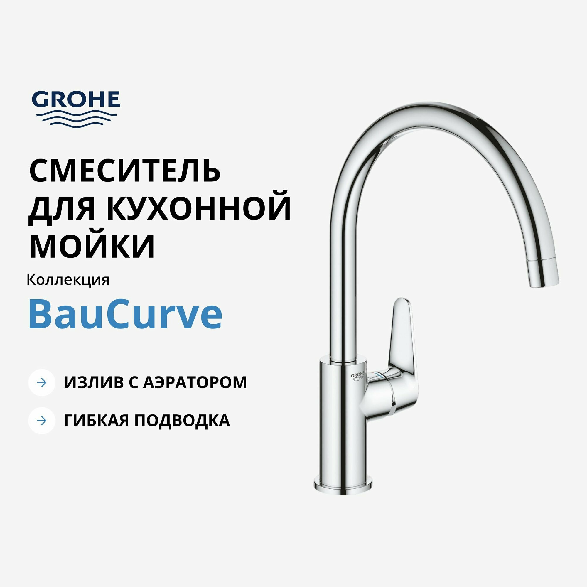Grohe BauCurve Смеситель для мойки с высоким C-образным изливом /картридж 28мм/, 31231001