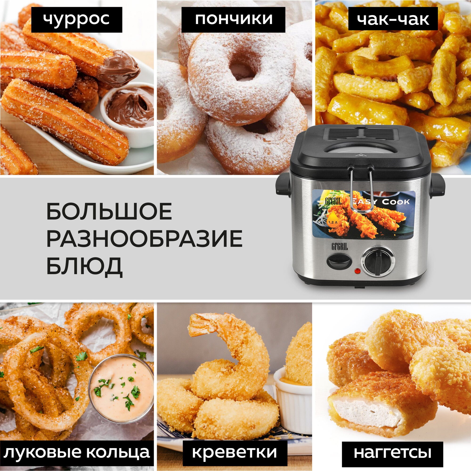 Фритюрницы и мультипечи GFGRIL электрическая фритюрница GFF-025 Easy Cook, быстрый нагрев до 190, фритюрница объемом 1.2 л., высокая мощность, фритюрница со съемной корзиной
