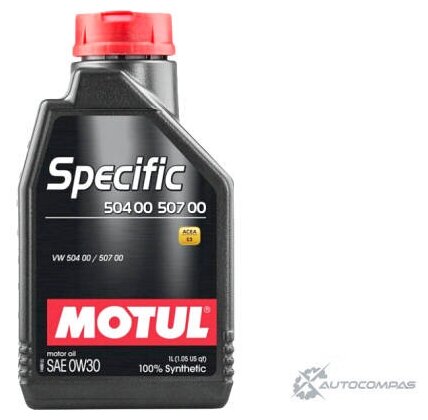 Лучшие цены. Описание 100% синтетическое энергосберегающее моторное масло с высокими эксплуатационными характеристикам и. Специально разработано для современных автомобилей группы VAG (VW, Audi, Skoda, Seat), оснащенных двигателями Евро IV, Евро V и Евро VI, требующих масел со сниженным содержанием серы, фосфора и сульфатной золы. MOTUL SPECIFIC 504 00 507 00 0W30 полностью обратносовместим с маслами предыдущих стандартов VW, таких как: VW 501 01, 502 00, 503 00 и 503 01 для бензиновых двигателей, и VW 505 00, 505 01. Магазины в вашем городе.