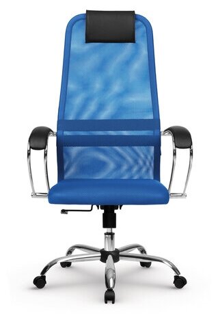 Кресло руководителя компьютерное рабочее офисное / для дома Метта Su-b-8 хром, ткань-сетка, сиденье мягкое, синее
