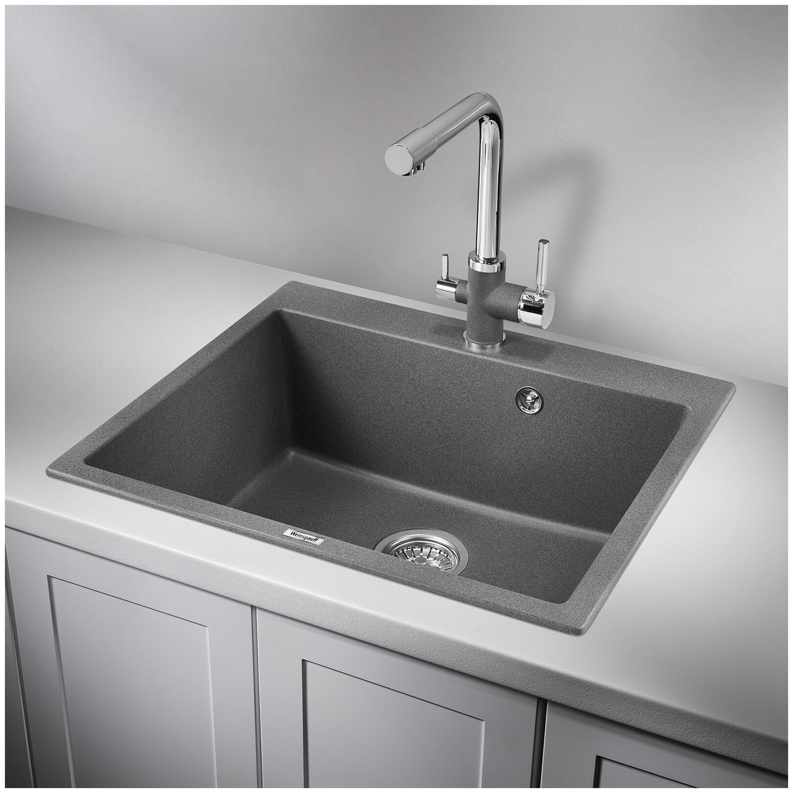 Лучшие цены. Кухонная мойка Weissgauff с чашей прямоугольной формы, выполненная из высококачественного искусственного камня и предназначенная для накладной установки в кухонный шкаф шириной 60 см - это по-настоящему вместительная чаша при лаконичном дизайне. Магазины в вашем городе.