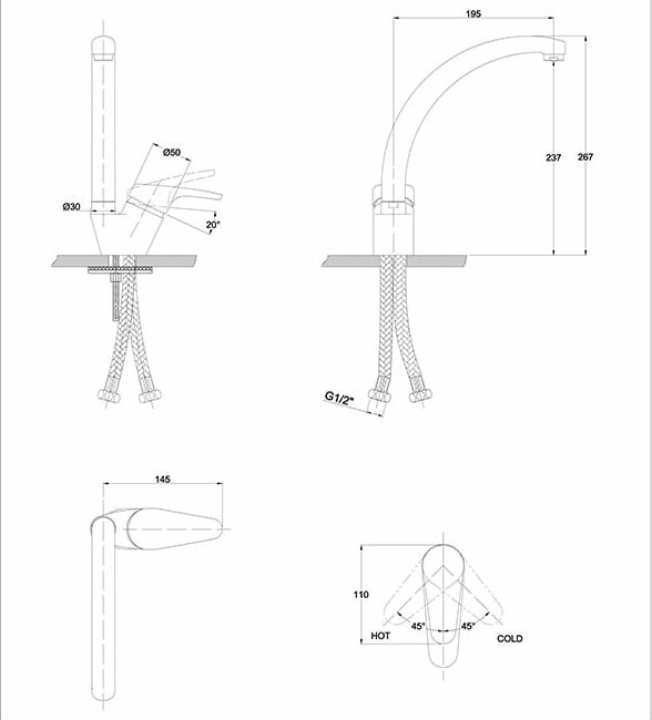 Смеситель для мойки GROHE BauLoop 31232001 с высоким C-образным изливом (картридж 28мм), подвод 1/2