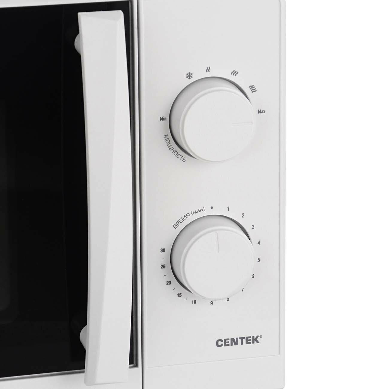 Лучшие цены. Centek CT-1571 — микроволновая печь с камерой 20 л. Есть шесть уровней мощности, максимальный показатель — 700 Вт. Тип управления — механический, доступны таймер со звуковым сигналом и переключатели на фронтальной панели. Предусмотрены пять режимов автоматического разогрева и функция авторазмораживания. Дверца дополнена ручкой и открывается налево. Диаметр поворотного стола — 24,5 см. Внутреннее пространство освещается. На стенках — покрытие из эмали. Размеры модели — 27 х 39 х 46 см, вес — 11 кг. Магазины в вашем городе.