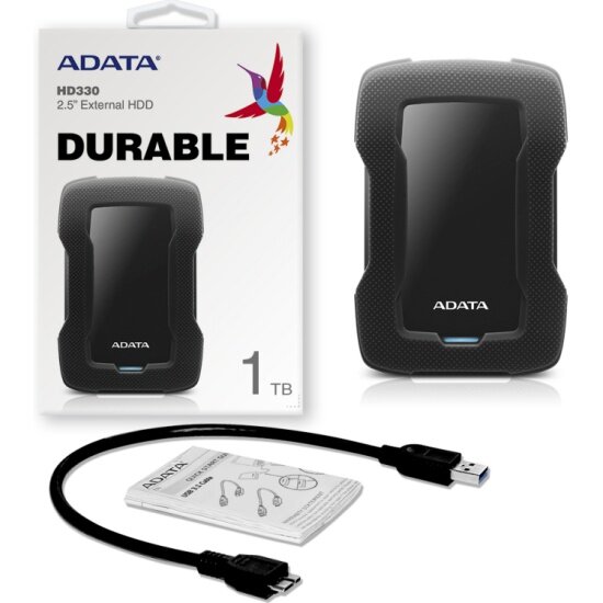 Внешний жесткий диск Adata HD330, 1 ТБ, USB 3.2 Gen1 (AHD330-1TU31-CBK) черный