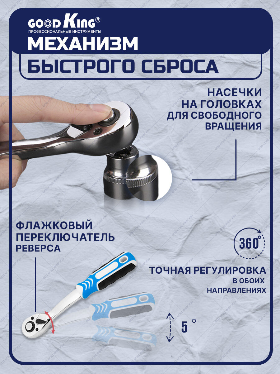Наборы инструментов B-10078 Набор инструментов для авто 78 предметов 1/4 1/2 трещотка 72 зуба Goodking B-10078 .