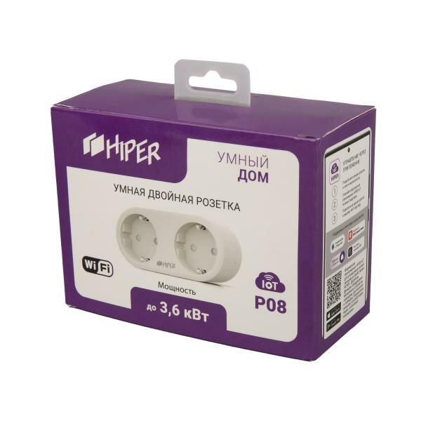 Лучшие цены. Тип: розетка силовая; Монтаж: накладной (открытый); Заземление: есть; Защитные шторки: есть; Цвет: белый; Максимальный ток: 16 А; Количество гнезд: 2; Описание: С умной двойной Wi-Fi розеткой HIPER IoT P08 3600 Вт вам больше не придётся волноваться, вспоминая, выключили ли вы утюг, плойку или настольную лампу! Теперь достаточно просто заглянуть в приложение на вашем смартфоне или планшете, чтобы удаленно, через Wi-Fi или мобильный интернет, контролировать состояние и управлять питанием подключенных. Магазины в вашем городе.