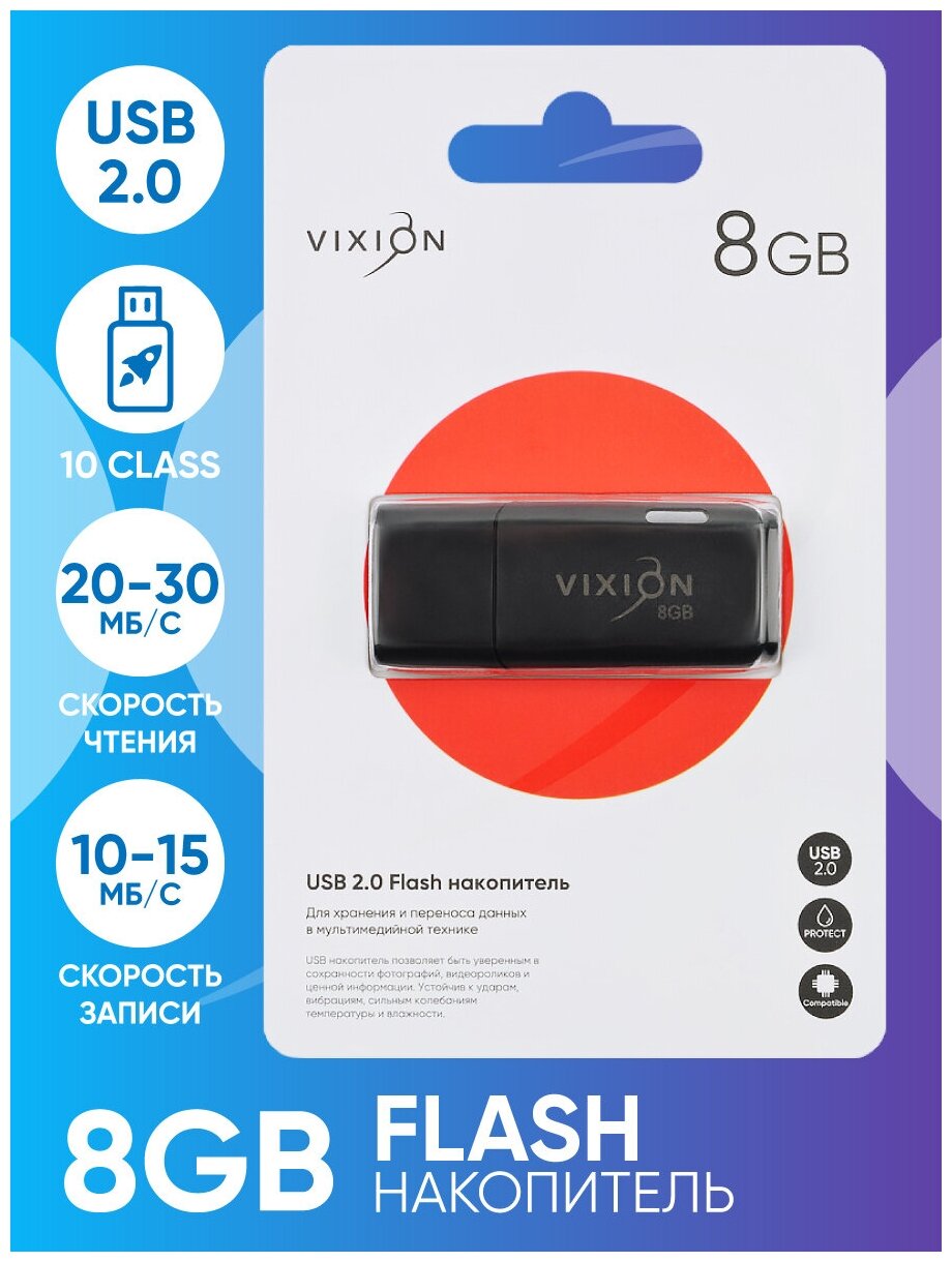 USB-флешки Накопитель USB Flash 08GB 2.0 VIXION Shark Eyes (черный)