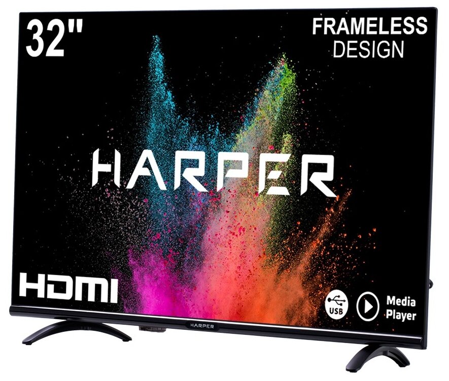 Лучшие цены. Насладитесь практически полным отсутствием рамок у телевизора – модель Harper 32R720T позволяет максимально погрузиться в просмотр ТВ или кино. Соотношение экрана к площади передней панели – почти 97 %. Приятным дополнением станет поддержка объёмного звука и продвинутый фильтр шума (3DNF). Матрица экрана, изготовленная по технологии VA, отлично работает с чёрным цветом, поэтому высококонтрастные изображения не станут для вас проблемой. Магазины в вашем городе.