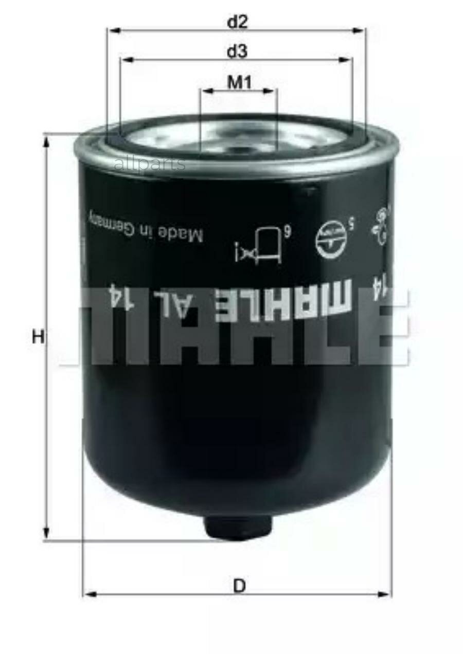 MAHLE AL14D Фильтр влагоотделителя SCANIA резьба G1 1/4,4-я серия 95-04, R,P,T 04-, RENAULT Midlum