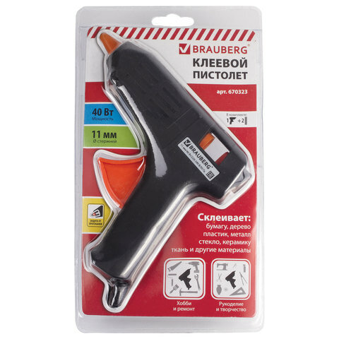 Клеевой пистолет, 40 Вт, для стержня 11 мм, BRAUBERG, в блистере, 670323 В комплекте: 1шт.