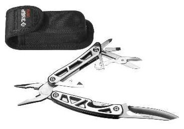 | Функции и возможности | консервный ножоткрывалка для бутылокфонариккрестовая отвёрткашлицевая отвёртканожницыплоскогубцыкусачкикарабин, захват для гаек и цил |