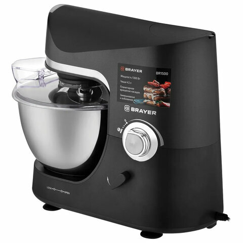 Миксер планетарный Brayer 1300 вт, 10 скоростей, 3 насадки, металлчаша, 4,5 л, черный (BR1500)
