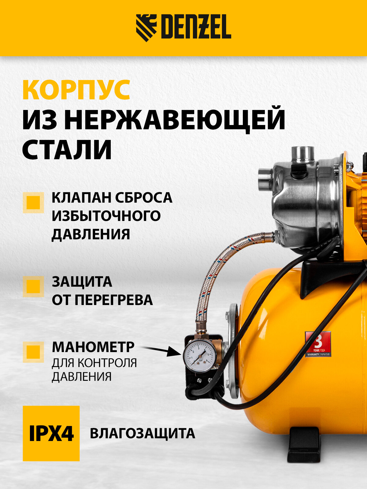 Насосная станция PS1000Х, 1000 Вт, 3500 л/ч, ресивер 24 л, подъем 44 м, нержавейка Denzel 16 460 ₽ Подробнее