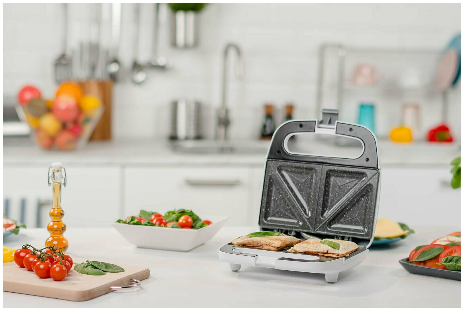 Лучшие цены. Цвет: белый; Тип: сэндвичница; Мощность: 750 Вт; Управление: механическое; Материал корпуса: пластик; Вид панели: сэндвичи; Количество порций: 4; Количество режимов: 1. Магазины в вашем городе.