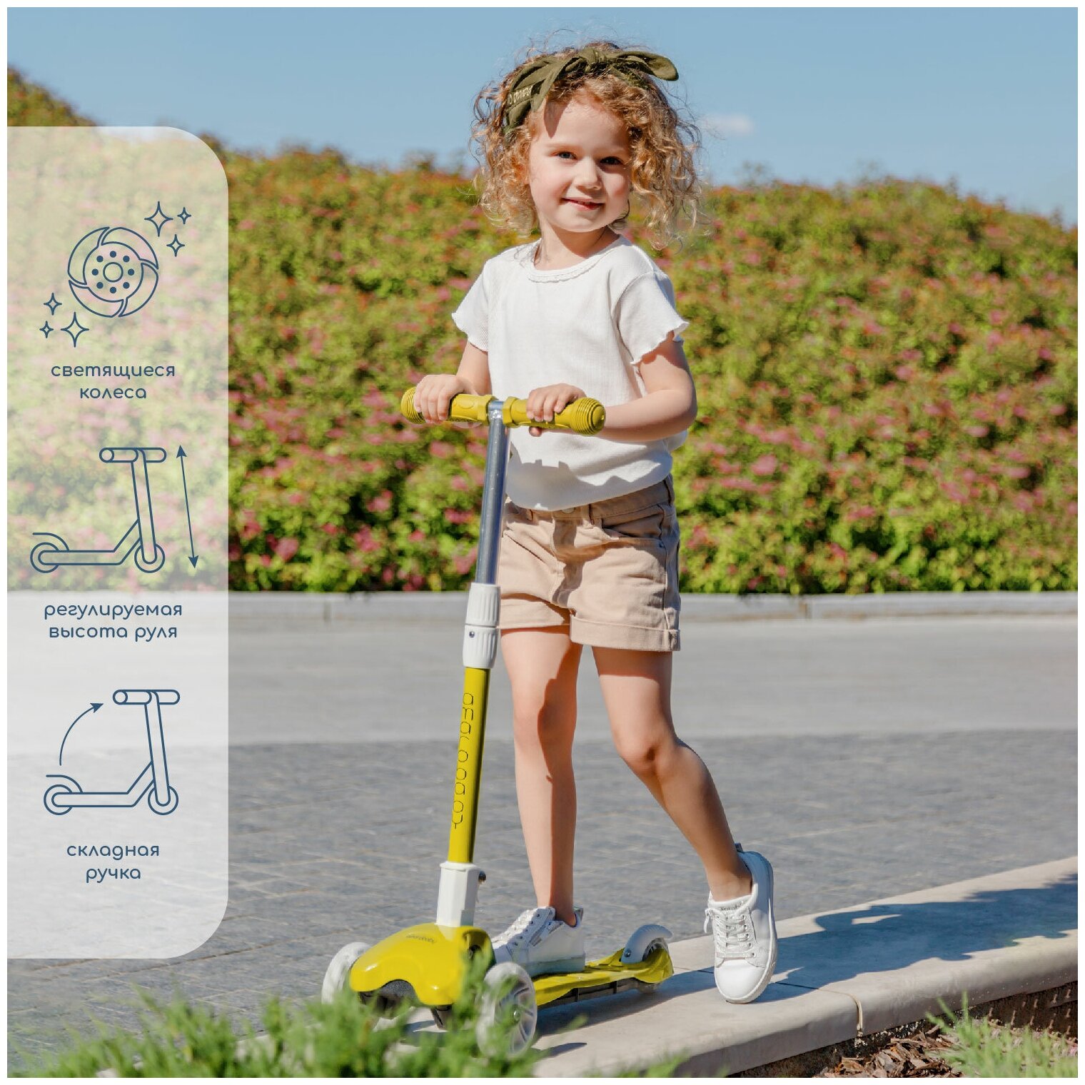 | Функции и возможности | складываемый / регулировка высоты руля / светящиеся колеса / дека |