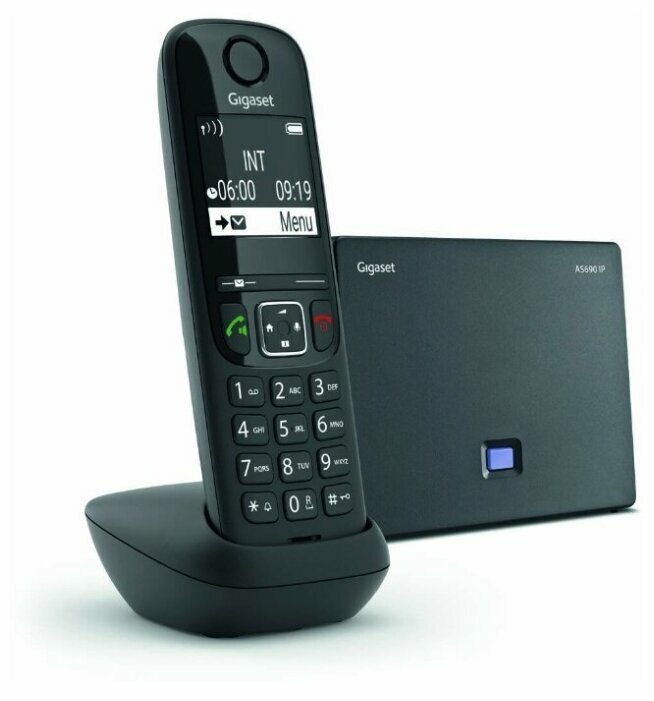 Радиотелефон GIGASET AS690, память 100 номеров, АОН, повтор, часы, черный
