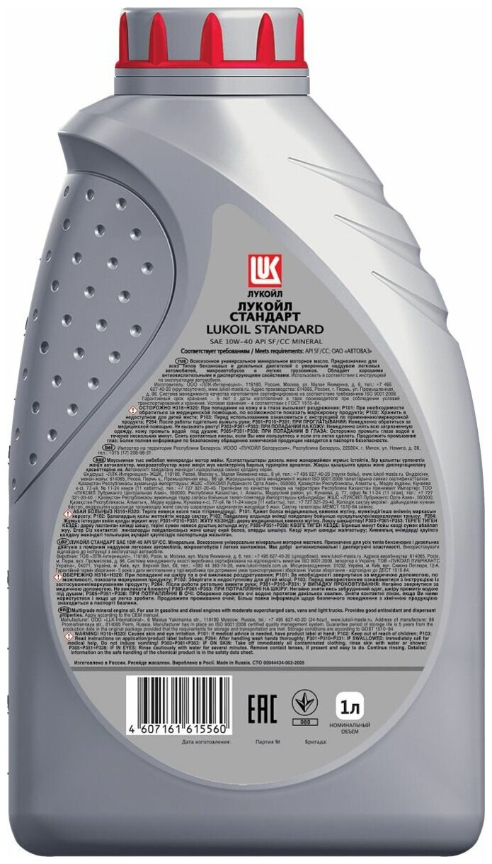 LUKOIL 19185 Масло Л стандарт, 10W40, SF/CC 4л моторное (минер) 1шт 2 040 ₽ Подробнее