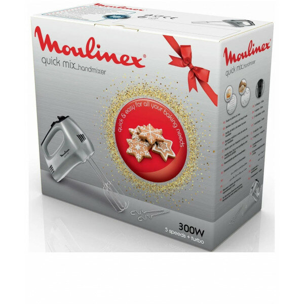 Миксер MOULINEх HM310E10, ручной, 300 Вт, 5 скоростей, серебристый