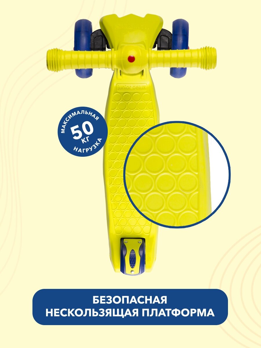 Самокат Трехколесный Складной, Серия "Junior Delux" (2022), со Светящимися Колесами, Голубой .