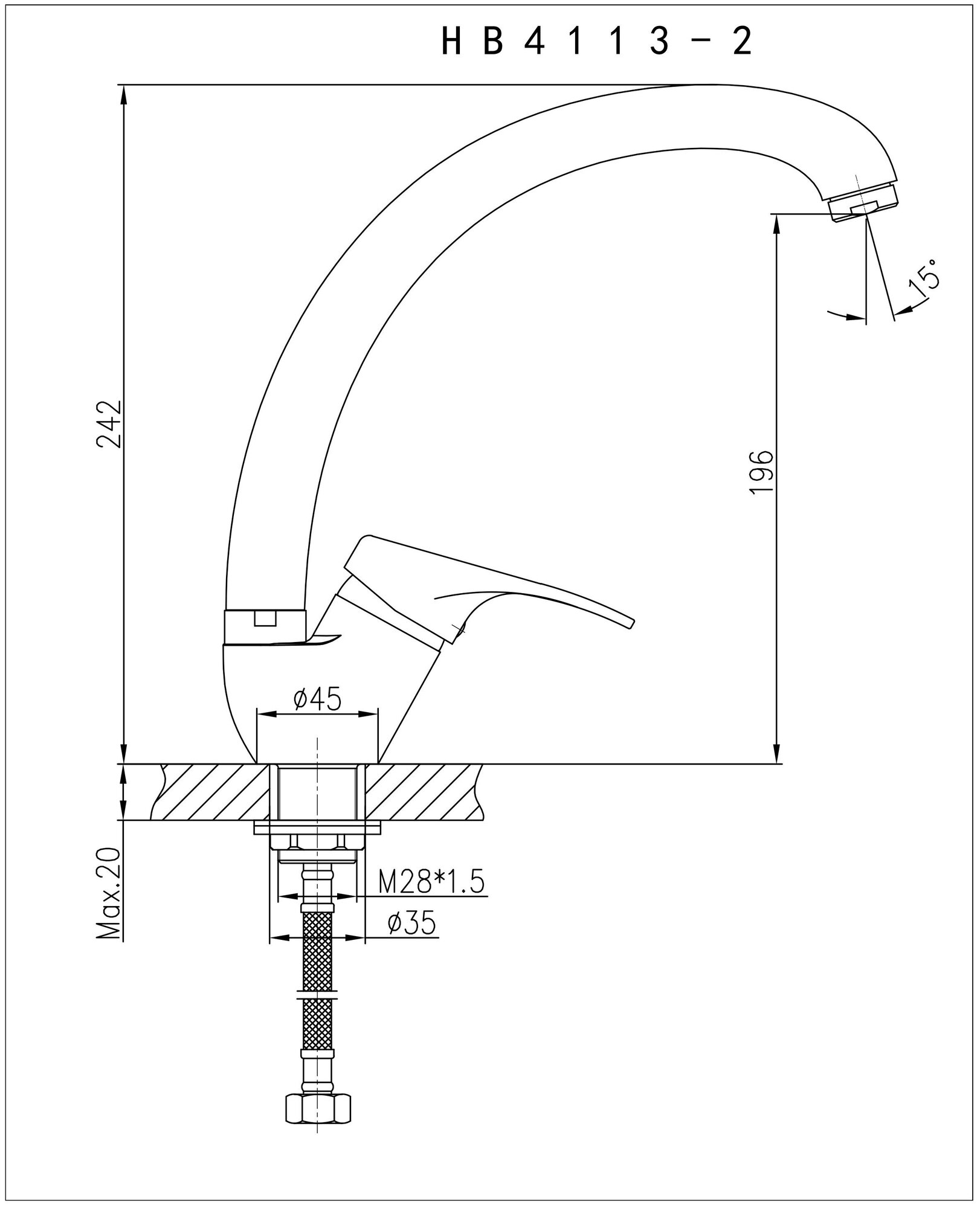 Смесители Смеситель для кухни 35к HB4113-2 HAIBA с/отв боковая п/гайку