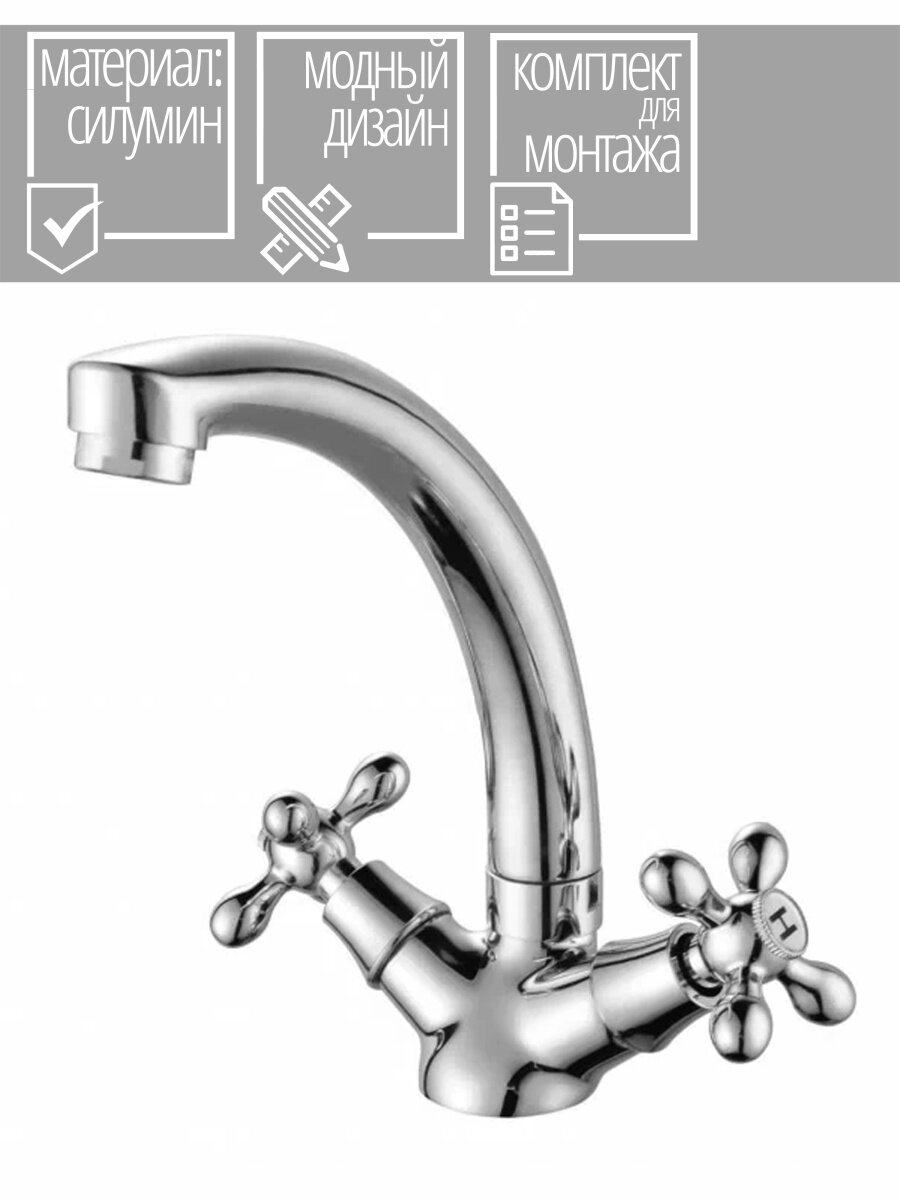 Смеситель для кухни, излив высокий, поворотный, двухвентильный. Латунь