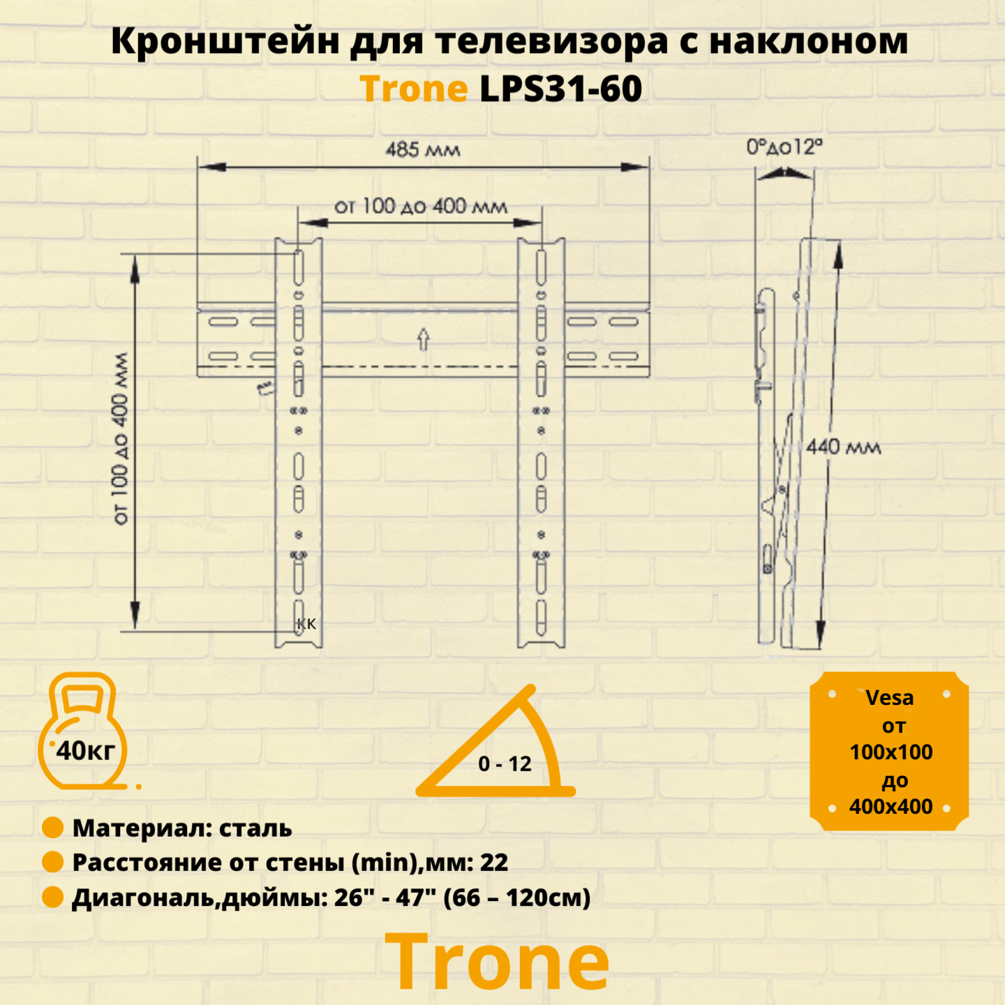 Подставка/крепление Кронштейн для телевизора на стену наклонный с диагональю 26"-47" Trone LPS 31-60,черный