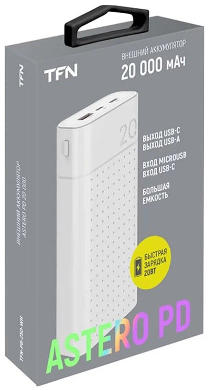 Внешний аккумулятор TFN 20000mAh Astero 20 PD белый, TFN TFN-PB-250-WH