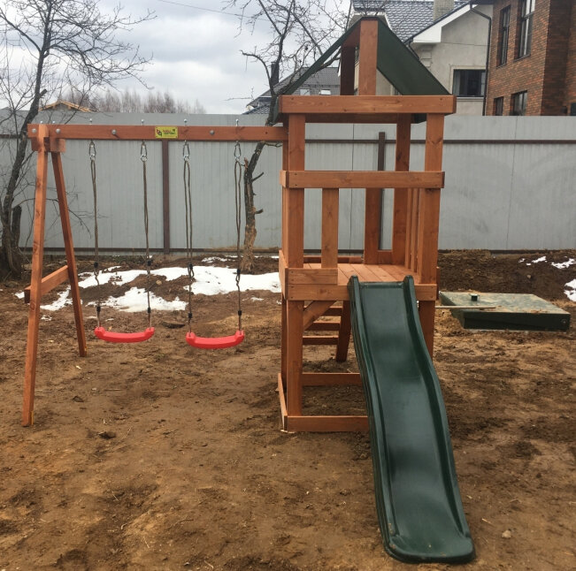| Компоненты | лестница / рукоход / 2 качели / домик / песочница |