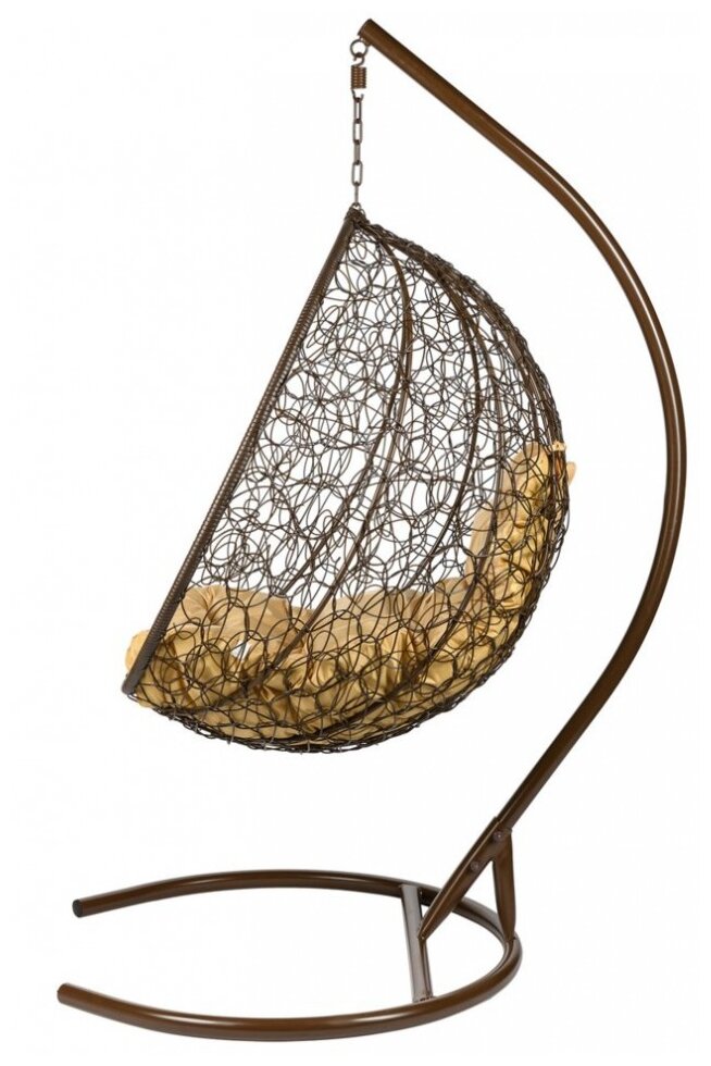 Кресло подвесное "Kokos", коричневое, со стойкой, коричневая подушка (чехол в подарок)