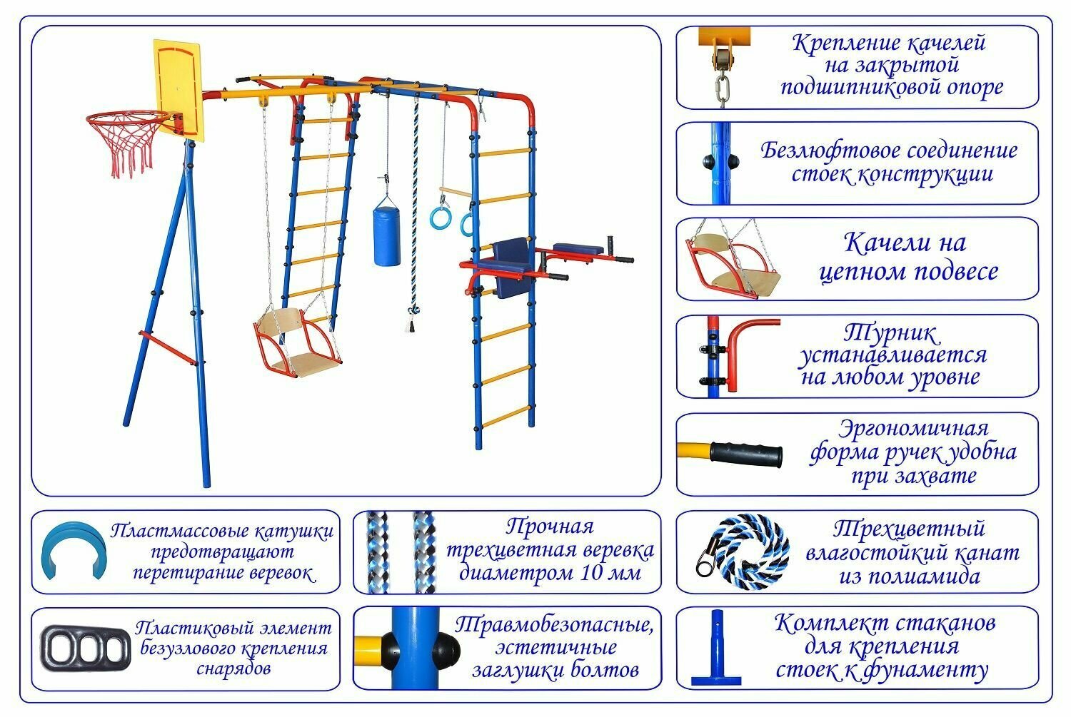 Спортивно-игровой комплекс юный атлет Уличный Плюс, синий/желтый/красный 25 700 ₽ Подробнее