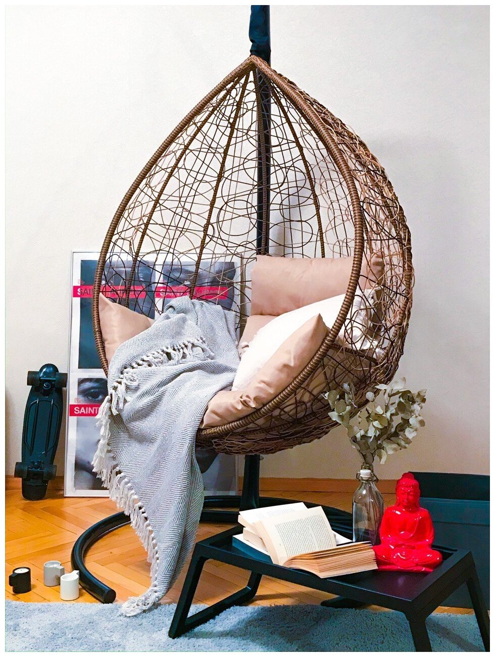 Садовая качель Подвесное кресло-кокон SEVILLA горячий шоколад + каркас (бежевая подушка)