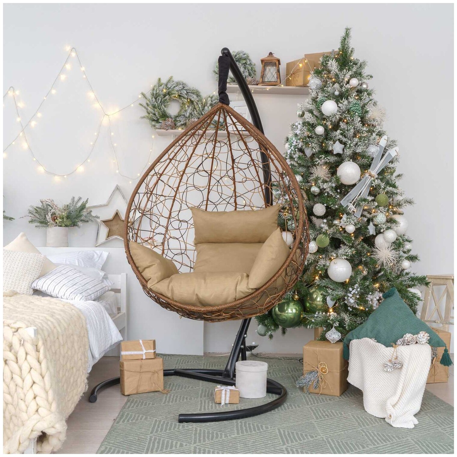 Подвесное кресло-кокон SEVILLA коричневый + каркас (бежевая подушка)